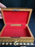 - Coffret à bijoux avec sa clef en nacre longueur 16 cm hauteur 7 cm largeur 11 cm.