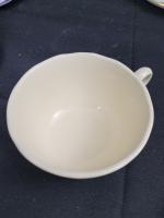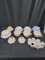 Lot 10 tasses 6 sous-tasses et 5 coquetiers avec leurs support en porcelaine comprenant :