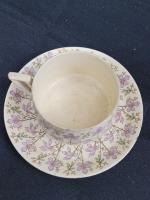 - Ancienne tasse Sarreguemines décor floral, hauteur 5,7 cm diamètre 7,5 cm et 14,5 pour la
