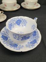 - 2 tasses LANCASTER décor floral bleu diamètre 11,5 cm diamètre 7 cm diamètre de la sous