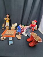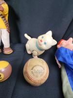 Lot de jouets anciens et vintage comprenant : - 5 marionnettes. - Voiture vedette le tout visible sur...