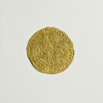 PHILIPPE VI. Ange d'or. 2ème ém. 1341. L'archange Saint-Michel debout de f. sous un baldaquin, tenant l'écu de France et une longue croix posée sur la tête d'un dragon gisant sous ses pieds. R./ Croix quadrilobée dans un quadrilobe accosté de quatre couronnelles. (Dy. 255a, L. 258a). 6,25 g. Trace de pli et minuscule trou sinon Très Beau.