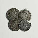 FRANCOIS I (1515-1547). Teston. 2ème t. Paris. (Dy. 793). ½ teston (3). 4ème t., Tours (Dy. 797) ;  3ème t., 19ème t. Paris (Dy. 795, Dy. 895). Arg. 9,02 g. 4,64 g. 4,70 g. 4,70 g. Ens. 4 p. Qques unes retouchées, B/TB.