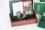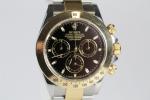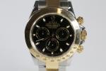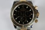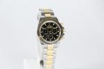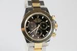 ROLEX, Cosmograph Daytona Oyster Perpetual, année 2004. Montre bracelet d'homme en or jaune 750 millièmes et acier. Cadran à fond noir, index bâtons lumineux en applique, trois compteurs. Mouvement automatique, Diam. : 40 mm. Bracelet oyster en or et acier (n°AD78493), fermoir oyster lock, maillons supplémentaires. Référence : 116523, N° de série : F212713. Full set, en état de fonctionnement.