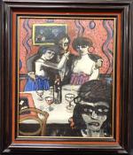 Auguste CHABAUD (1882-1955). Filles avec un client, 1907. Huile sur carton. 75 x 60 cm. (Quelques griffures, écaillures et petites anciennes restaurations).