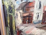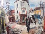 GEN-PAUL (1895-1975) : Rue de Paris à Montfort-l'Amaury. H.s.T. signée en bas à gauche, située au dos sur la toile, 46 x 55 cm