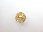 Sicile. Syracuse. Epoque de Dionysos Ier. (vers 400 av. J-C.). 50 litrae. Tête imberbe juvénile à g. ; les cheveux courts (le dieu-fleuve Anapos ?). R./ Cheval au galop à d. (Jameson 826 ; P.B. 1267 ; P. 608). Or. 2,87 g. Très Beau.