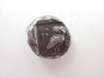 Attique. Athènes. Réforme d'Hippias (514-511). Tétradrachme. Tête casquée d'Athéna à d. R./ Chouette debout à d., la tête de f. ; derrière, une branche d'olivier ; le tout dans un carré creux. (Pozzi 1532). Arg. 16,95 g. Presque Très Beau.