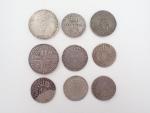 - 2 pièces de 1/10 d'écu au bandeau : Poitiers 1742 (2,80g) et Toulouse (?) 1763 (?) (2,58g)
