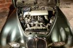 L'exemplaire que nous présentons à la vente dispose d'une carte grise française et affiche 10 593 km au compteur (non garantis). Sa carrosserie, gris métallisé (non d'origine), présente un bel effet malgré quelques défauts structurels, notamment une déformation au niveau de la traverse avant et des traces de corrosion sur les longerons avant ainsi que sur le soubassement. Un enfoncement est également visible sur le longeron arrière droit. Cette voiture est équipée de roues fils, d'un toit ouvrant et d'une radio d'époque. L'intérieur en cuir beige est en très bon état, tout comme les boiseries en noyer, offrant un cadre luxueux. Elle est également dotée d'un volant accessoire Moto Lita. Le moteur a été remplacé. La voiture est équipée d'un overdrive DeNormanville. Toutefois, immobilisée depuis quelque temps, elle nécessitera une remise en état notamment une révision de l'embrayage, des freins, de la motorisation (fuite d'essence). Véhicule à restaurer non roulant.