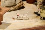 H 15 cm d'une cliente, tête en biscuit, corps en composition H 14 cm et d'une enfant ou poupée, tête corps en biscuit peint H 7,5 cm,