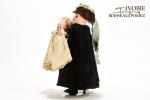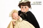 la Nurse et son bébé, lot de deux poupées dont une poupée tête en biscuit coulé, bouche ouverte marquée en creux Limoges France , corps raide en composition vêtements et perruque ancien, une chaussure manquante