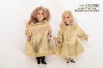 l'autre , yeux à refixer, bouche ouverte, bras gauche à refixer , robe d'origine H 13 cm