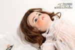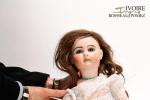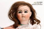 Jumeau période SFBJ, poupée tête en biscuit coulé bouche ouverte (accident à la bouche), yeux bleus fixes marquée au tapon rouge « Tête Jumeau »et 10 (en relief), la tête est montée au boudin sur un corps Jumeau diplôme d'honneur (étiquette), jambes à remonter, elle est vêtue d'une chemise en coton blanc, perruque avec sa calotte en liège d'origine