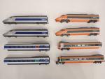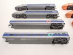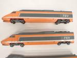 JOUEF écartement HO - lot de 2 rames TGV Sud est et Atlantique se composant de 4 élements chacun ( motrice-fausse motrice et 2 wagons voyageurs) BE