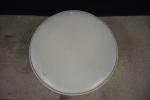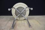 Structure en métal tubulaire chromé, assise circulaire recouverte d'un blanc reposant sur un piètement quadripode.