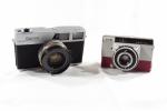 Canon Canonet, objectif Canon SE 45mm 1,9, il déclenche et Sem Babyjoy de couleur fushia, objectif Som Berthiot 45mm 2,8, il déclenche. Made in France.