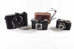 Série Appareils Photos Français: Photax, objectif Boyer Série VII Paris, il déclenche, et Fex Superfex, objectif Fexar Optic-Spec. France, il déclenche. Avec son étui. Et Ontoblock II Paul Cornu, objectif Boyer Saphir 50mm 3,5 Paris, il déclenche.
