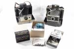 Polaroid à soufflet Automatic 215; Polaroid Flashgun #268 en boite avec mode d'emploi; Bonnette macro Portrait en Kit #581 boite et mode d'emploi; Polaroid à soufflet Automatic 340.