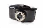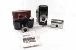 Photax III Va appareil photos 6x9cm avec mode d'emploi et étui d'origine, il déclenche ; Kodak appareil photo à soufflet Modèle 33 avec objectif Angénieux 100mm 4.5, il déclenche ; Tirelire Kodak Instamatic 100 Camera en bon état.