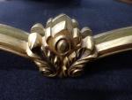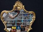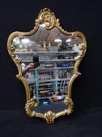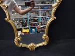 Glace de forme violonée en bronze doré. Dim : 66x45 cm (usures)