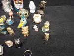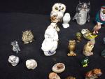 Collection de petits sujets hibou miniature en céramique verre, résine etc dont trois pièces CHRISTOFLE. Haut moyenne : 7 cm(usures)