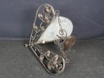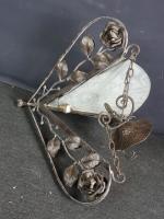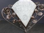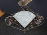 Partie de suspension 1930 en fer forgé à décor de roses (manque deux plaques de verre). H. 40 cm. Larg. 45 cm