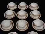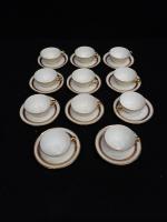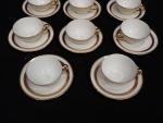 ART DE LA TABLE - LIMOGES - Partie de service à thé en porcelaine émaillée polychrome marquée au revers comprenant 11 tasses et 11 soucoupes (usures)