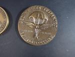 - Médaille en bronze "Les vieilles suspentes 50ème anniversaire" "1er parachutiste militaire français Fred Geille, Colonel Armée de l'Air 1896-1976" (diam : 8 cm)