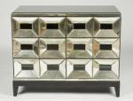 Commode modèle "Ducale" la façade ornée à cassettes en couleur noire, miroir antique, piétement en acajou teinté noir, finition velours à l'intérieur et à l'arrière.