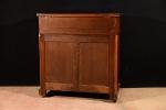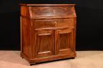 Commode chemin de fer d'époque XIX's, abattant à mécanisme découvrant un intérieur en marbre blanc et un miroir, un tiroir et deux portes en partie basse. H. 103 cm. Larg. 96 cm. Prof. 50 cm