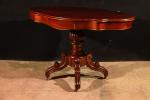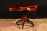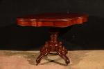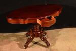Guéridon de forme violonée en acajou, époque XIXème, reposant sur une base tripode, deux tiroirs en ceinture. H. 70 cm. Long. 115 cm. Prof. 63 cm