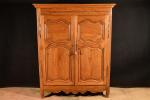 Armoire d'époque XIX's en chêne sculpté ouvrant par deux portes moulurées. 188 x 140 x 50 cm