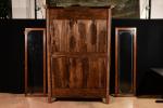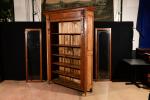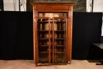 Vitrine bibliothèque en bois sculpté, ouvrant par deux portes vitrées (à refixer). H. 227 cm. Larg. 150 cm. Prof. 35 cm