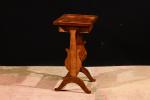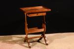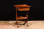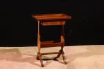 Petite table travailleuse de style rustique en noyer d'époque XIX's, plateau à cuvette, ouvrant par un tiroir en ceinture, un porte-revues en partie basse. H. 65 cm. Larg. 45 cm. Prof. 32 cm