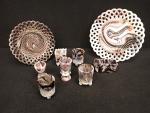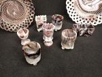 Lot 668 Dans le goût de PORTIEUX. Deux assiettes ajourées et sept coquetiers ou petits vases miniatures...