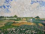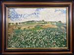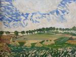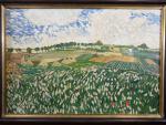 BENOIT-LATOUR Ateliers L-C (XXème siècle). Tableau d'inspiration de Van Gogh : Paysage près d'Auvers. Dim : 38 x 55 cm.