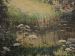 BIVA Henri (1848-1929) : Paysage de rivière. Aquarelle signée encadrée sous verre, Dim : 72 x 53 cm (usures)