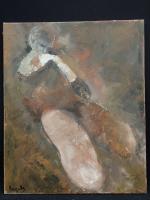 BOUGRELLE Jean Claude - Femme allongée, huile sur toile signée. Dim : 60x50 cm (usures)
