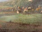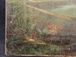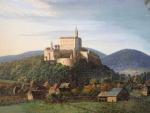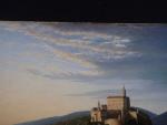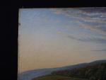 Ecole Allemande du XIXème siècle : Vue d'un village avec château sur les hauteurs. Huile sur toile. 40 x 57 cm (Restaurations)