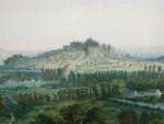 Ecole du XIX's. Montagnes de Sannois, au loin le Mont Valerien. Aquarelle encadrée sous verre. Dim.: 14 x 23 cm