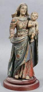 23 - Vierge à l'Enfant en bois sculpté peint, ép. XVIII's. Haut : 30 cm