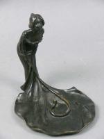 107 - GUAL F., époque Art Nouveau : Jeune femme en bronze patiné, la robe faisant vide-poche, signé. Haut. : 16 cm