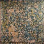 Fragment de tapisserie d'époque début XVII' à décor d'animaux et oiseaux sur fond végétal, 190 x 190 cm