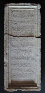 Cippe en marbre blanc d'époque du IIe siècle après JC à Rome comportant une inscription honorifique en dialecte dorique d'époque romaine (époque des Antonins